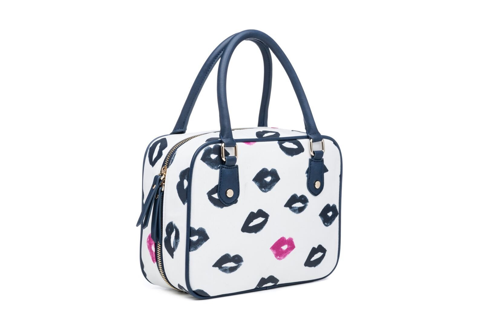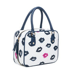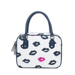 - + Printed Faux Leather (Color: White with Pink and Blue Lip Print)